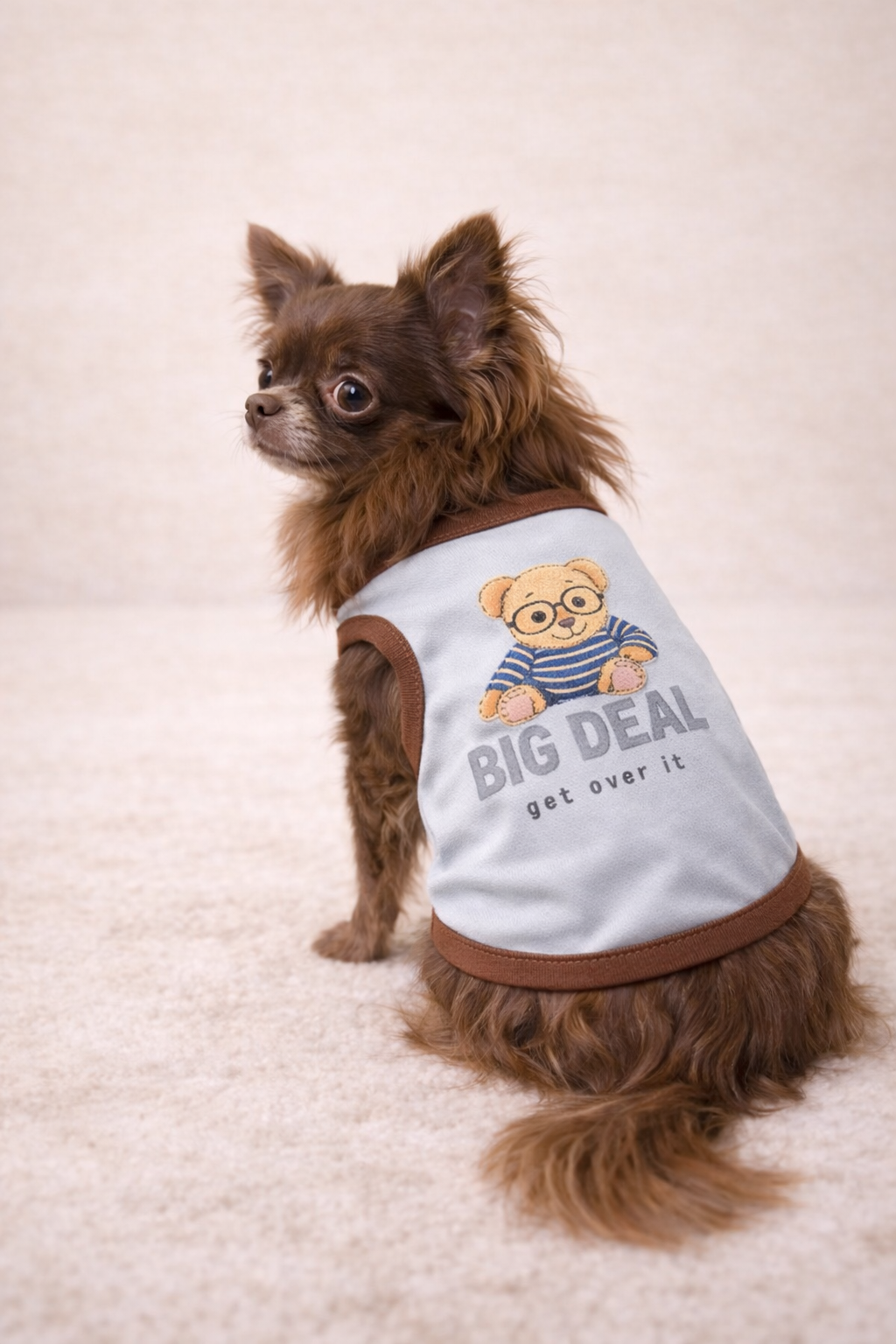 Ajoutez le débardeur « Teddy à lunettes » à votre panier et offrez à votre chien un vêtement aussi confortable que craquant.