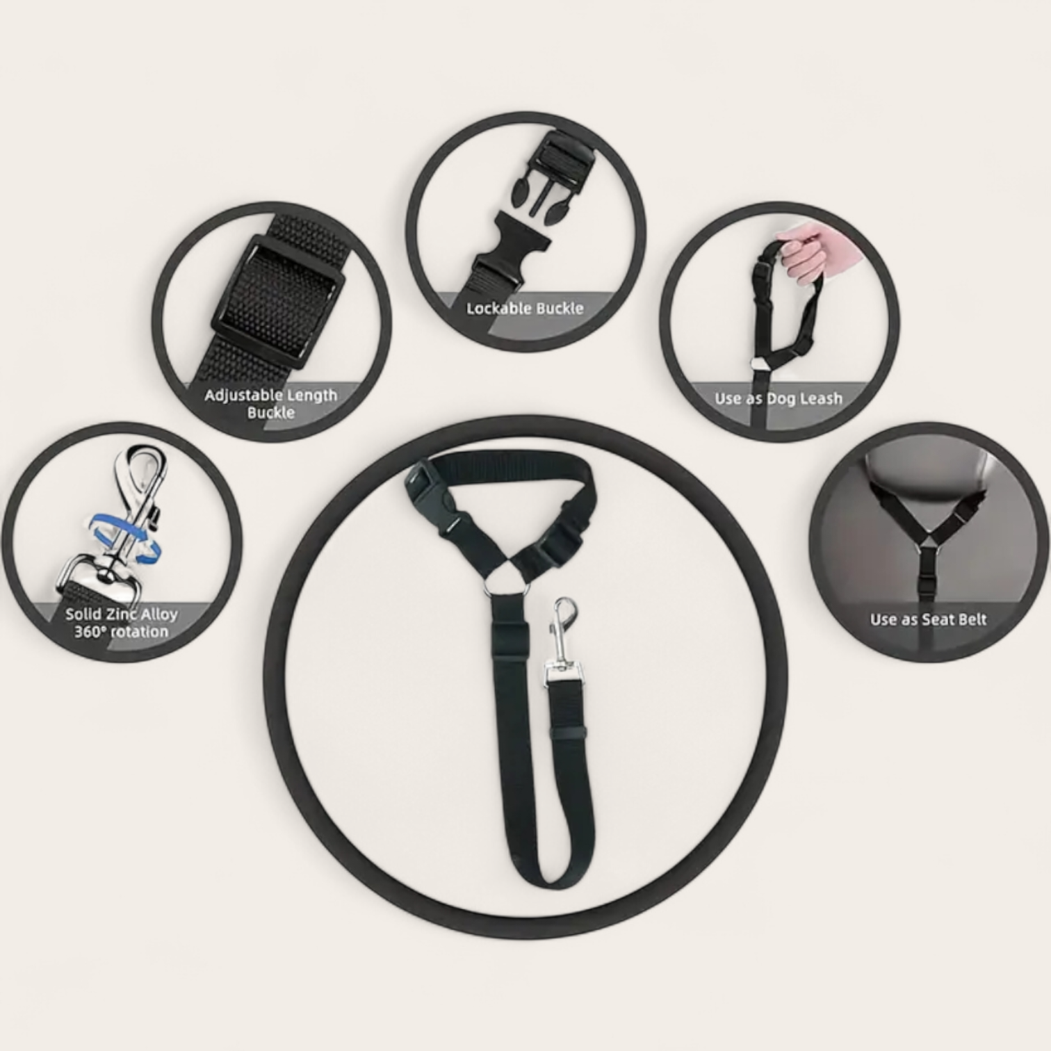 Notre laisse de voiture pour chien a été conçue pour offrir un parfait équilibre entre sécurité, confort et liberté de mouvement contrôlée. Elle permet à votre chien de rester à sa place tout en pouvant s’asseoir ou se coucher confortablement pendant le voyage.