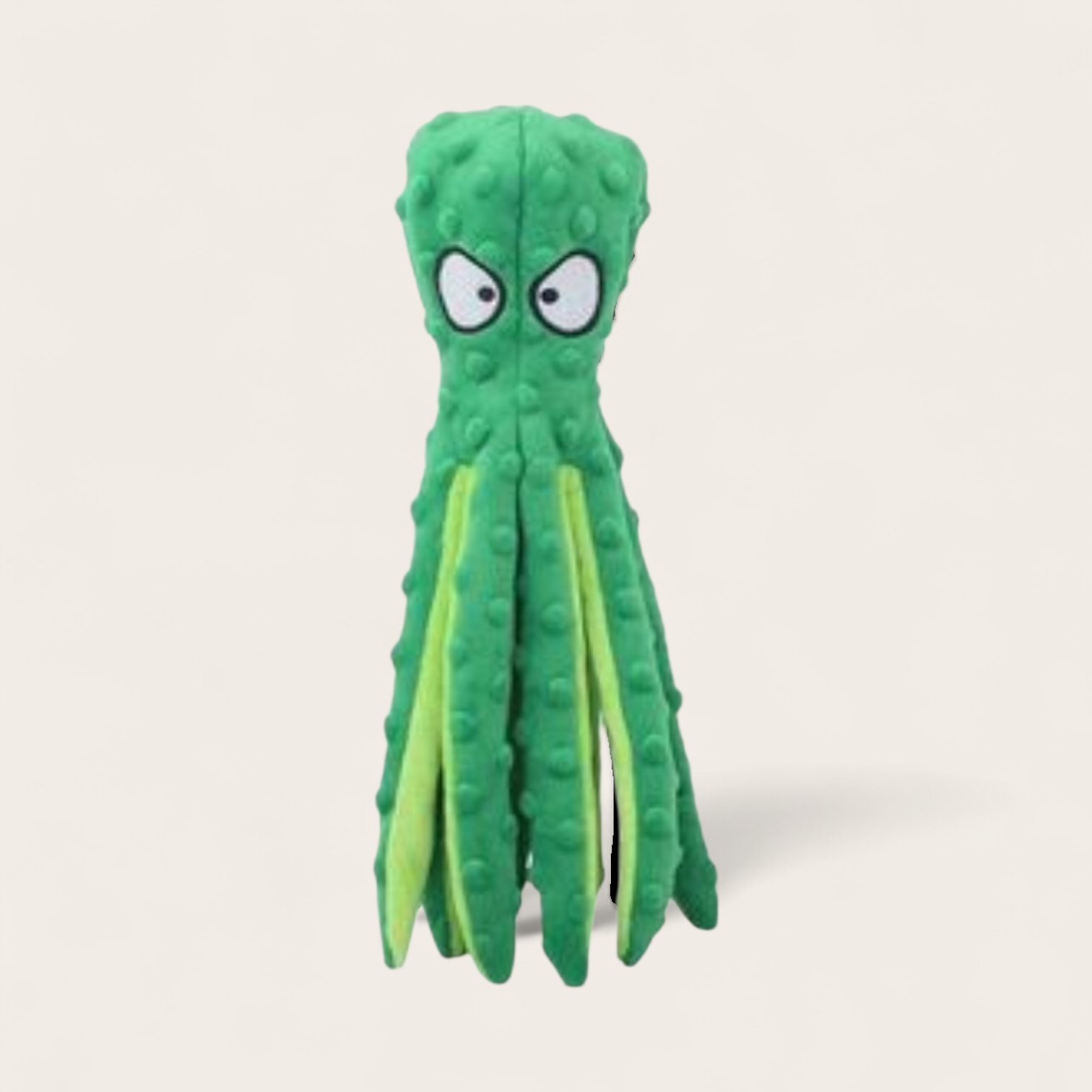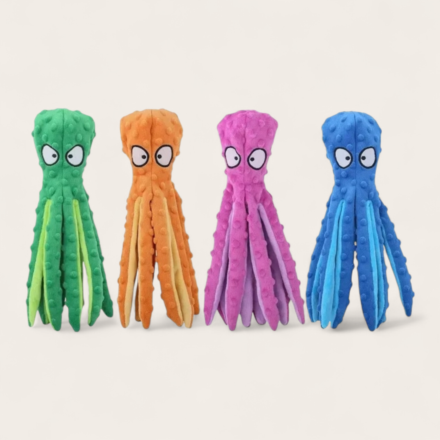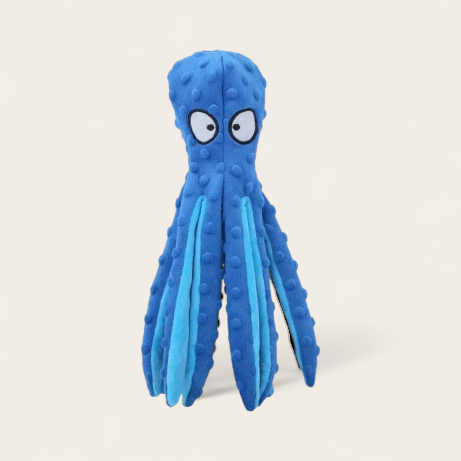 Avec ses huit tentacules souples, cette peluche devient rapidement le jouet préféré des chiens joueurs : à tirer, secouer, mordiller ou câliner. Chaque tentacule attire l’attention de votre compagnon et l’encourage à jouer plus longtemps, ce qui contribue à canaliser son énergie, réduire l’ennui et limiter les comportements indésirables.