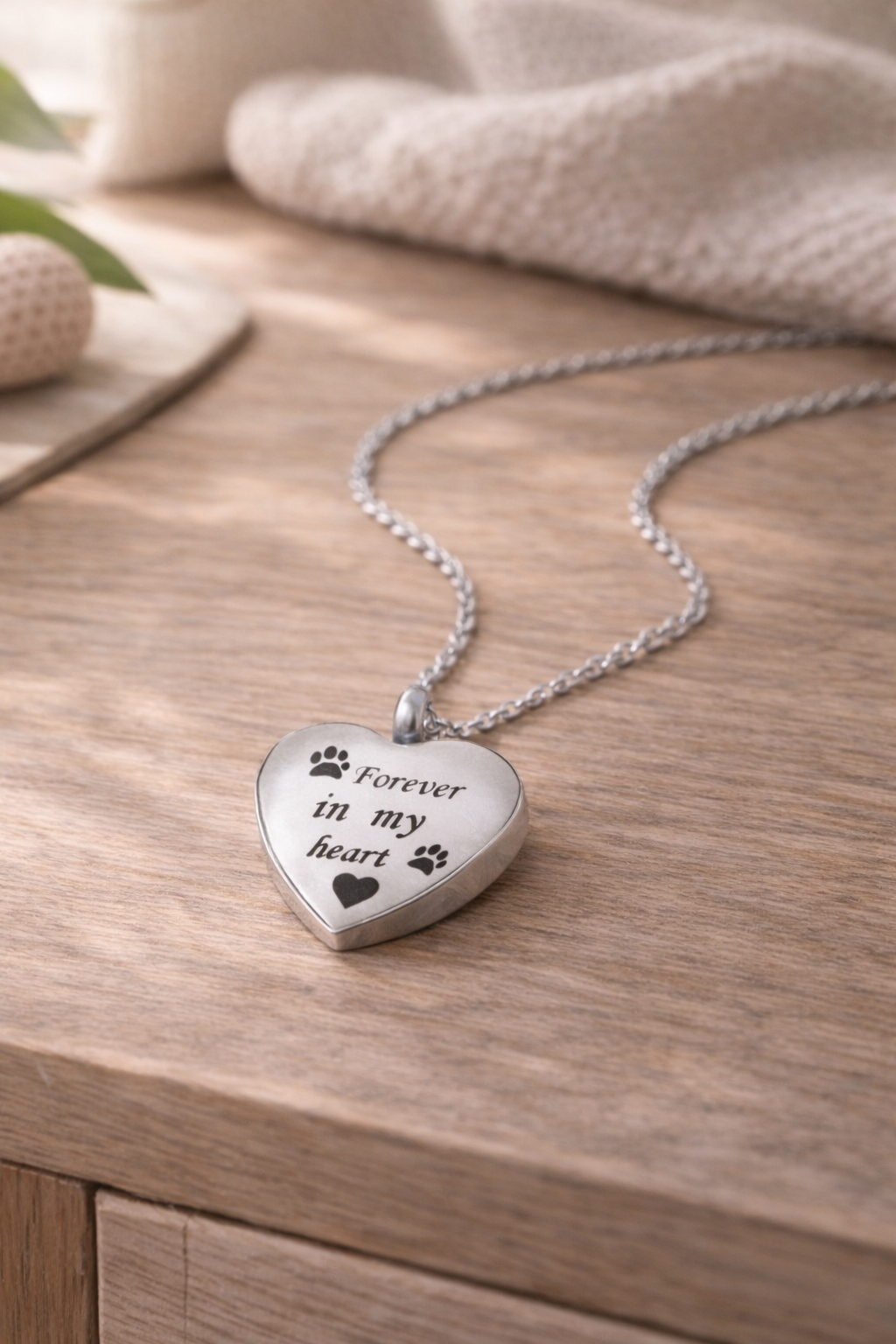 Notre pendentif funéraire pour animal a été pensé pour vous offrir un moyen doux, intime et symbolique de garder votre compagnon près de vous, chaque jour.